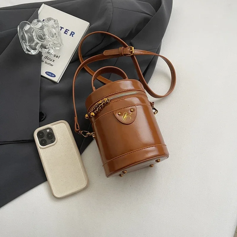 Le meilleur de Petit Sac Seau Rond En Similicuir – Fermeture Zippée Élégant Et Tendance